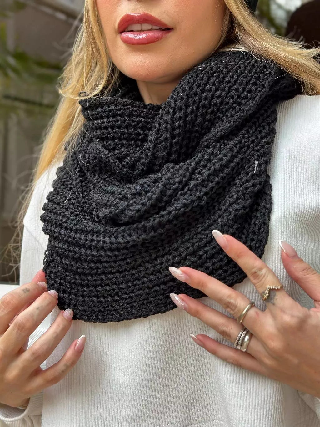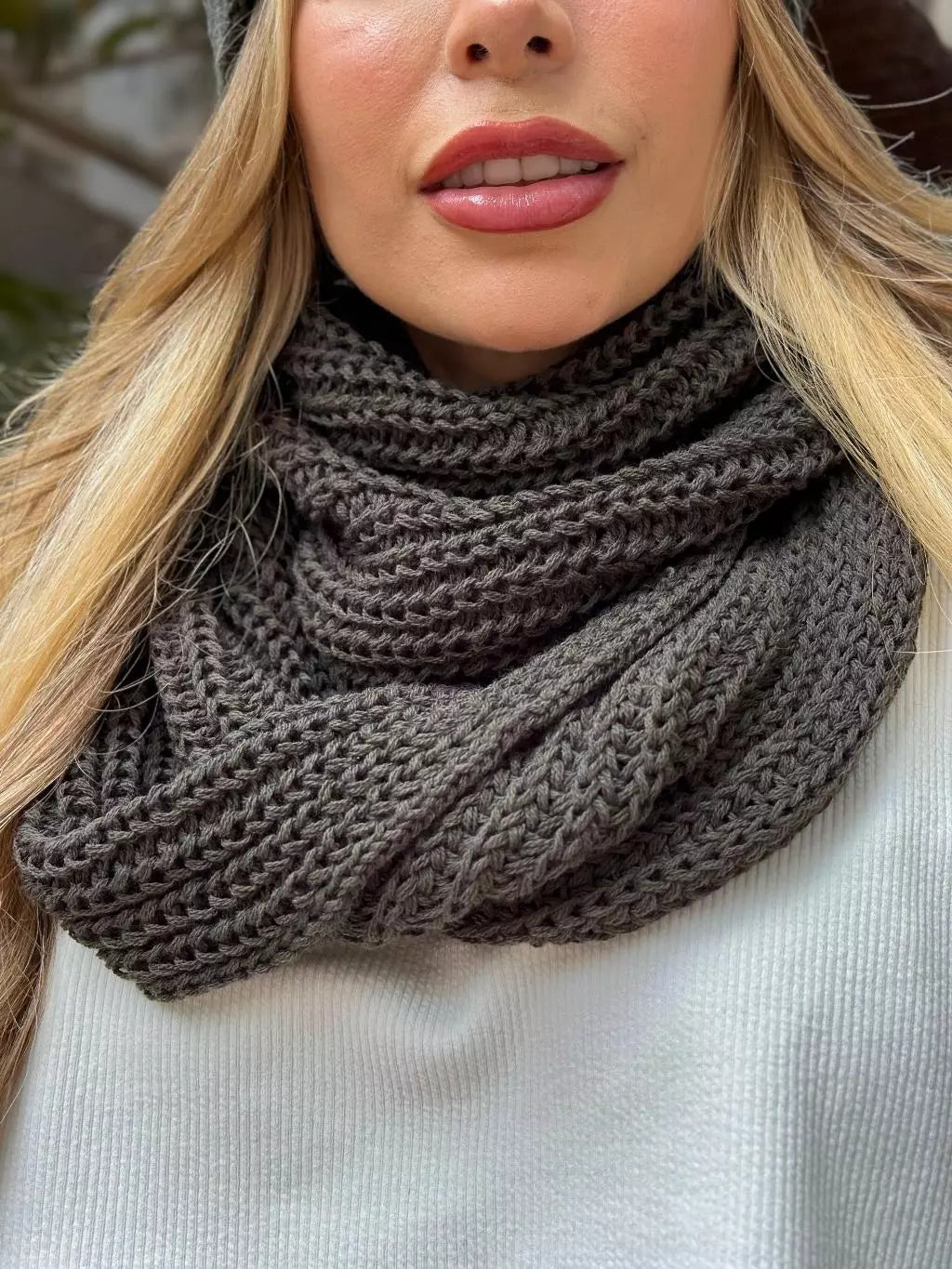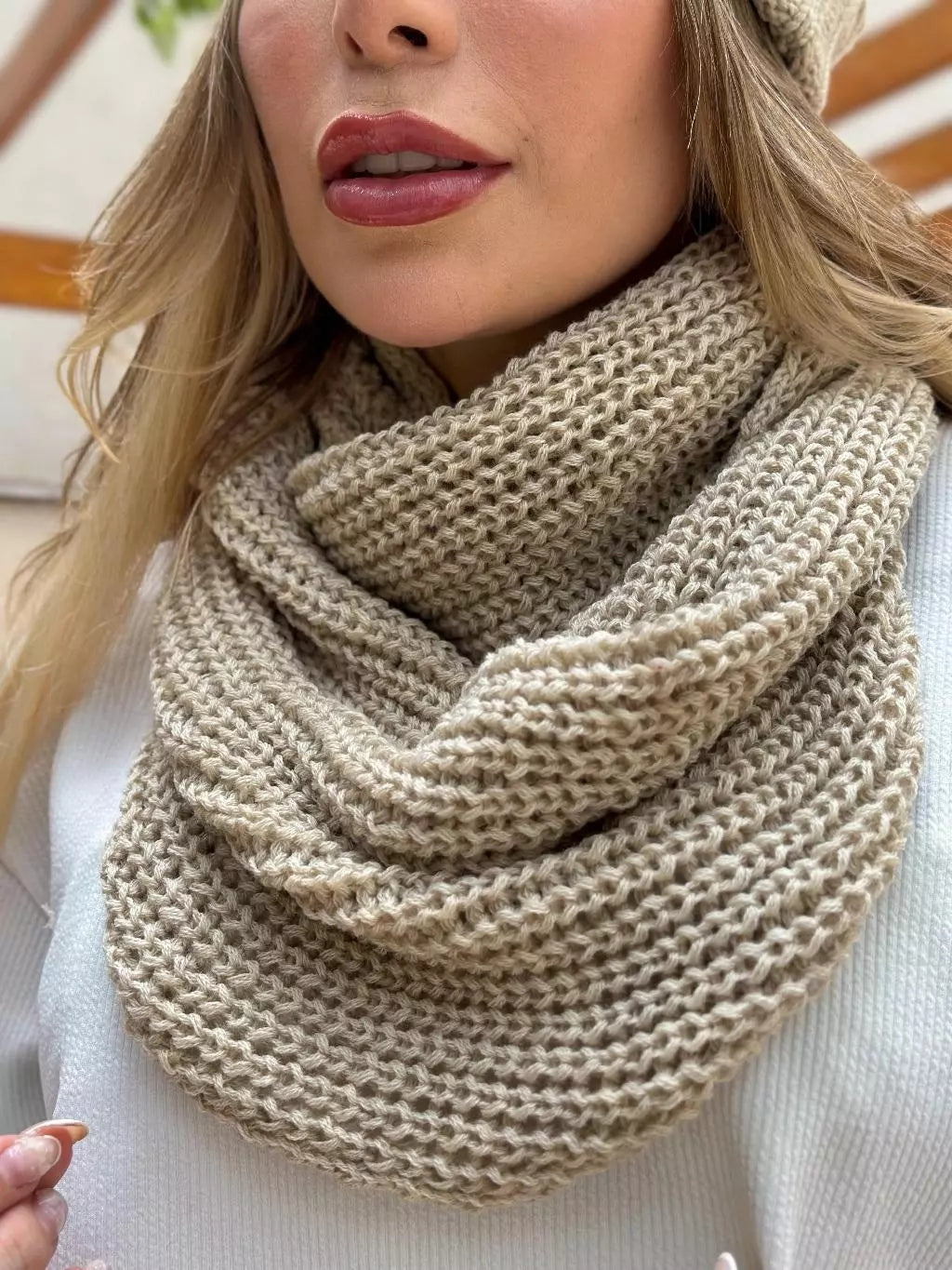 - 1x Cachecol Feminino de Tricô em Lã com Duas Voltas