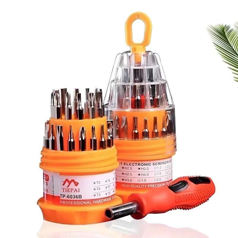O Jogo de Chaves 31 em 1 de Precisão é ideal para quem gosta de praticidade e organização na hora de reparar eletrônicos, óculos, relógios, celulares, notebooks e muito mais. Tudo em um único kit compacto e funcional.