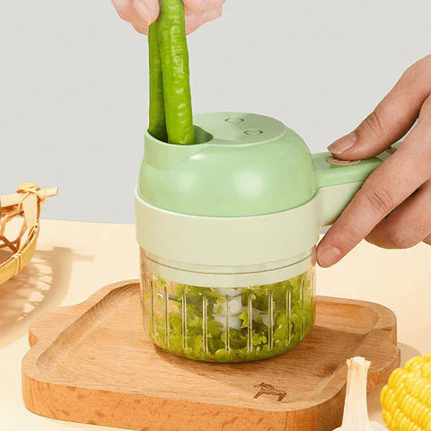 Com ele você pode ter um cortador de vegetais, picador de carne e ainda uma escova de limpeza elétrica ao mesmo tempo, apenas trocando os acessórios do conjunto multifuncional.